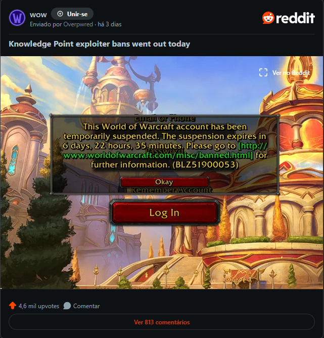 Críticas à Leveza: Muitos jogadores consideram que 7 dias de banimento é pouco, já que os infratores estarão de volta a tempo para o início da temporada de Míticas+ e Raides.